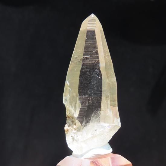 透明度が非常に高いテッシンハビットタイプのポイントです。 若干ライトスモーキーな色合いが透明感を際立たせます。 成長線と接合線も非常に美しくかつ力強さも感じさせます。 全面光沢の素晴らしいクリスタルです。