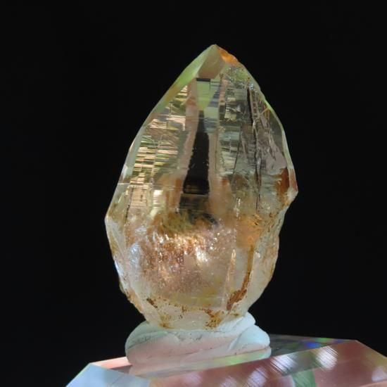 リモナイトの影響によりゴールデンカラーの印象を受けるガネーシュヒマール産水晶です。透明度、表面の光沢共に非常に高くガネーシュヒマール特有の輝きを放ちます。 採掘される中からごく稀に産出されるトップクオリティの結晶です。