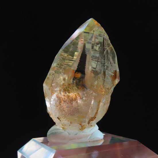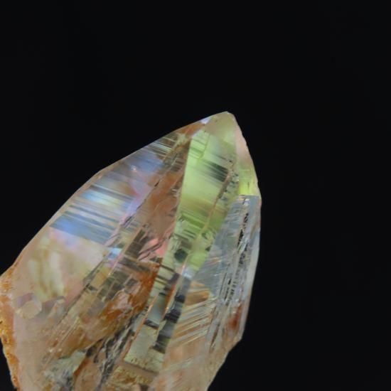 状態が良く非常に透明度の高いクリスタルです。成長線と接合線のバランスがまさにガネーシュヒマール産といった具合でとても美しいです。リモナイトが付着していて色の濃淡も楽しめます。また、光沢もあり全体的に質の高い水晶です。