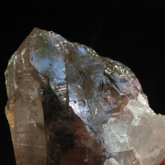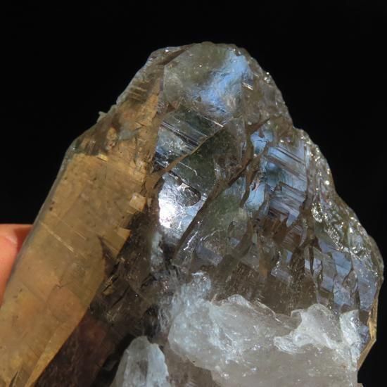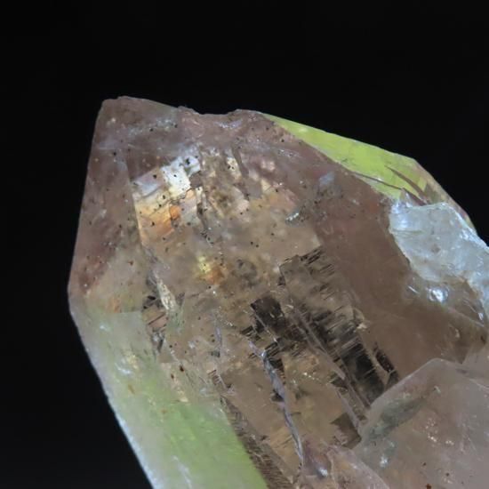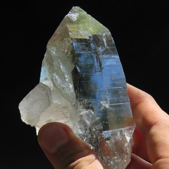 透明度が非常に高いテッシンハビットタイプのポイントです。 若干ライトスモーキーな色合いが透明感を際立たせます。 成長線と接合線も非常に美しくかつ力強さも感じさせます。 全面光沢の素晴らしいクリスタルです。