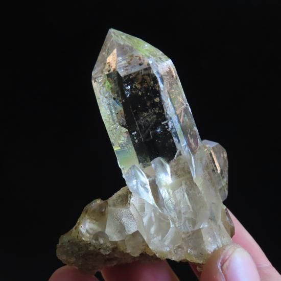 メインとなるポイントの下部に少し溶けた水晶のポイントが内包されていてクォーツインになっています(写真1枚目参照)。
