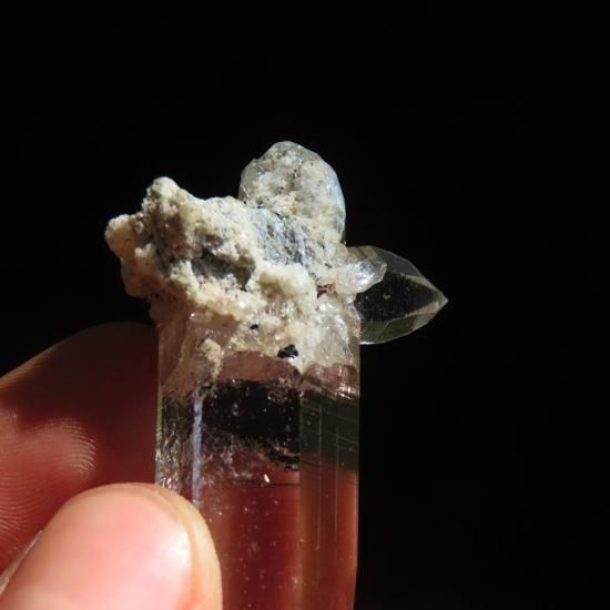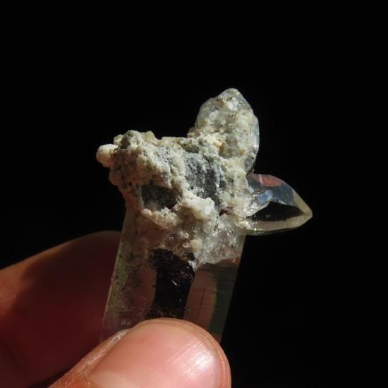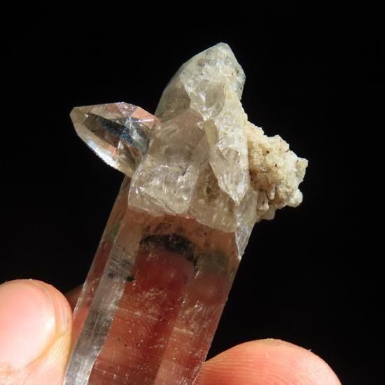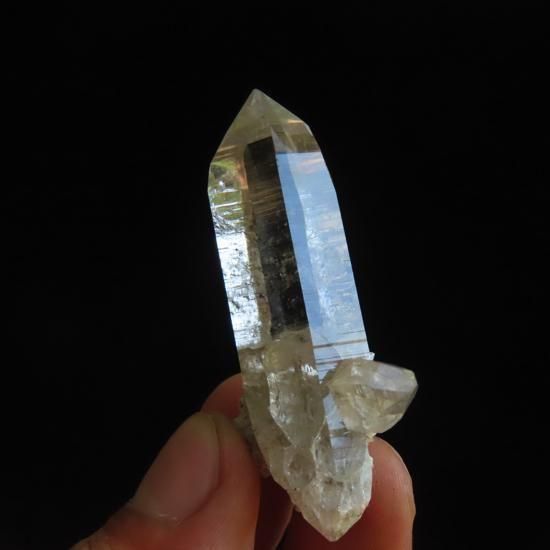 色味は淡いライトスモーキーでメインとなるポイントはダブルターミナル(両剣水晶)になりかけ成長が止まっています。