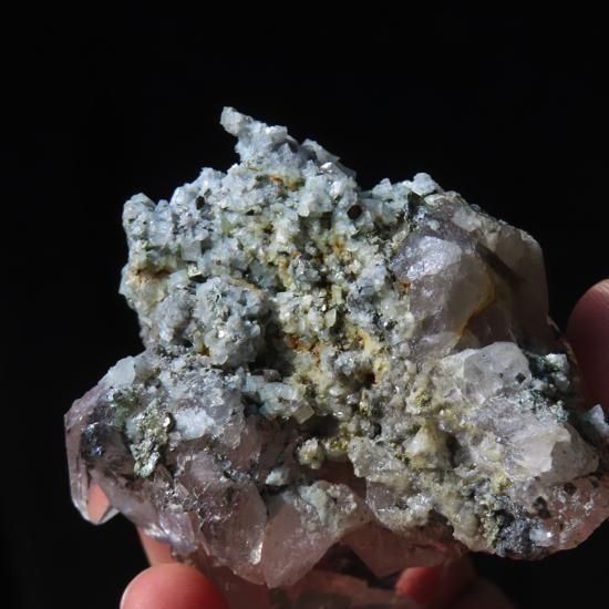 ガネーシュヒマール産 郡晶 ライトスモーキー 方解石、雲母付き 163.3g
