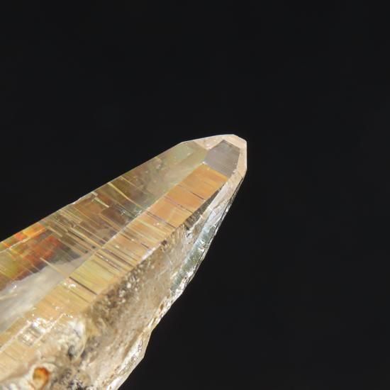透明度が非常に高いテッシンハビットタイプのポイントです。 若干ライトスモーキーな色合いが透明感を際立たせます。 成長線と接合線も非常に美しくかつ力強さも感じさせます。 全面光沢の素晴らしいクリスタルです。