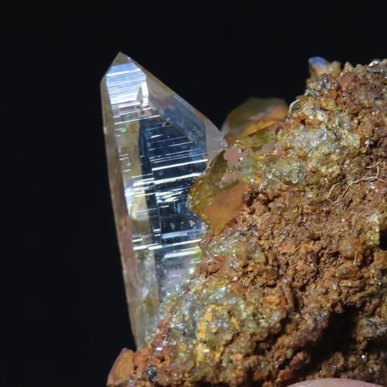 状態が良く非常に透明度の高いクリスタルです。成長線と接合線のバランスがまさにガネーシュヒマール産といった具合でとても美しいです。リモナイトが付着していて色の濃淡も楽しめます。また、光沢もあり全体的に質の高い水晶です。